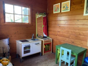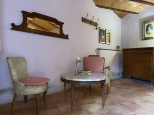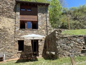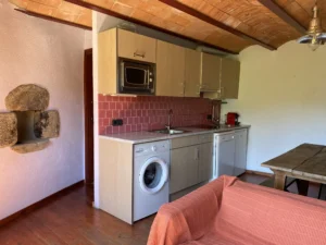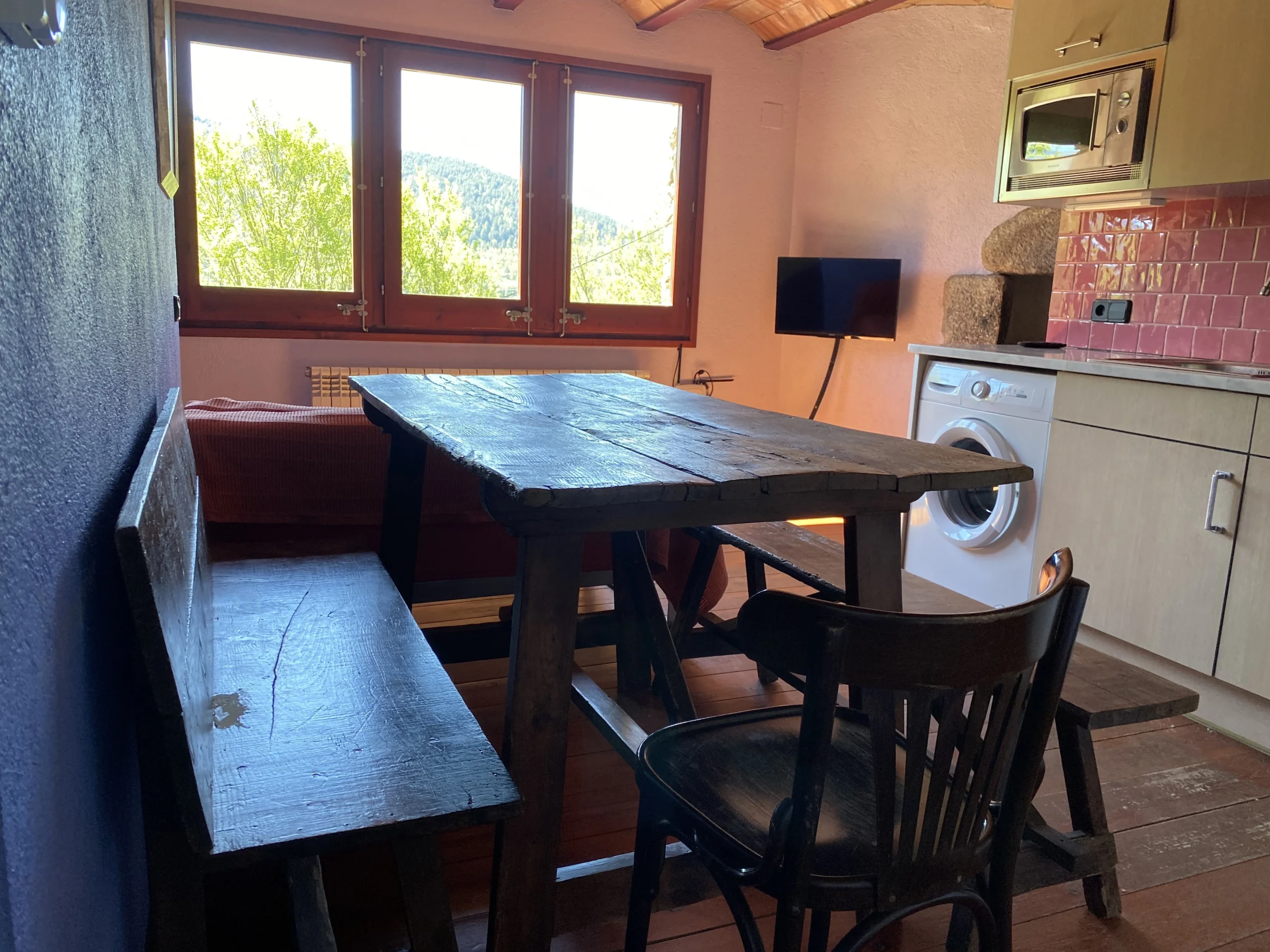 Primera planta: Cuina, menjador-sala d’estar i bany complet. La cuina disposa de nevera, rentaplats, rentadora, microones, vitroceràmica, cafetera Nespresso i tipus italiana.