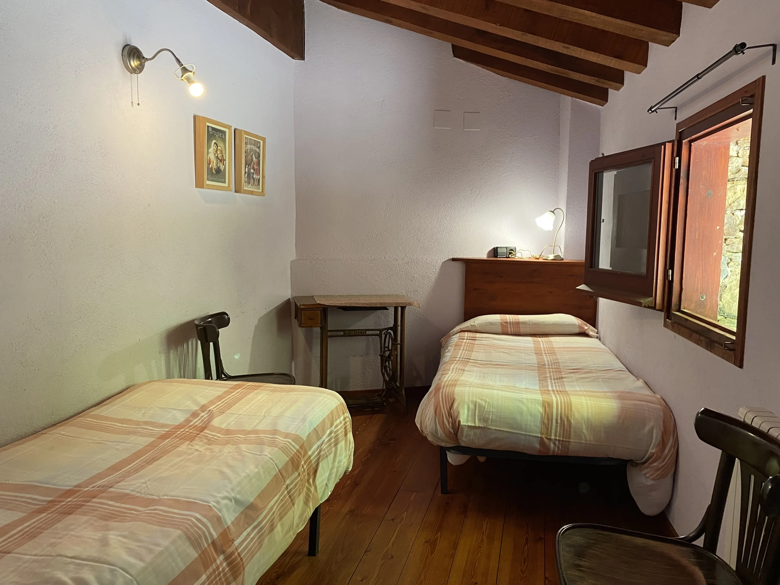 Segona planta: dues habitacions dobles: una amb dos llits individuals i l’altra amb un llit doble.