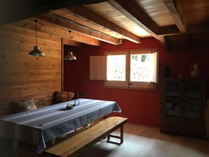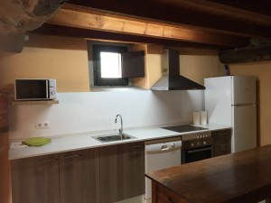 At the ground floor there is the kitchen-dining room and a complete bathroom with a bathtub. The kitchen is equipped with hob, micro-wave, washing-machine and a fridge with a little freezer. The dining-room includes a long table with a bench to enjoy the meals. Besides, there is still the old cow feeder.