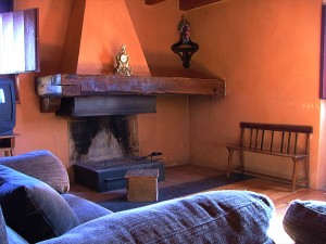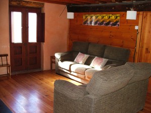 At the first floor, there is a living-room with a fireplace, a three and a two-seater sofas and a TV. At the same floor there are two rooms, one double and one individual.