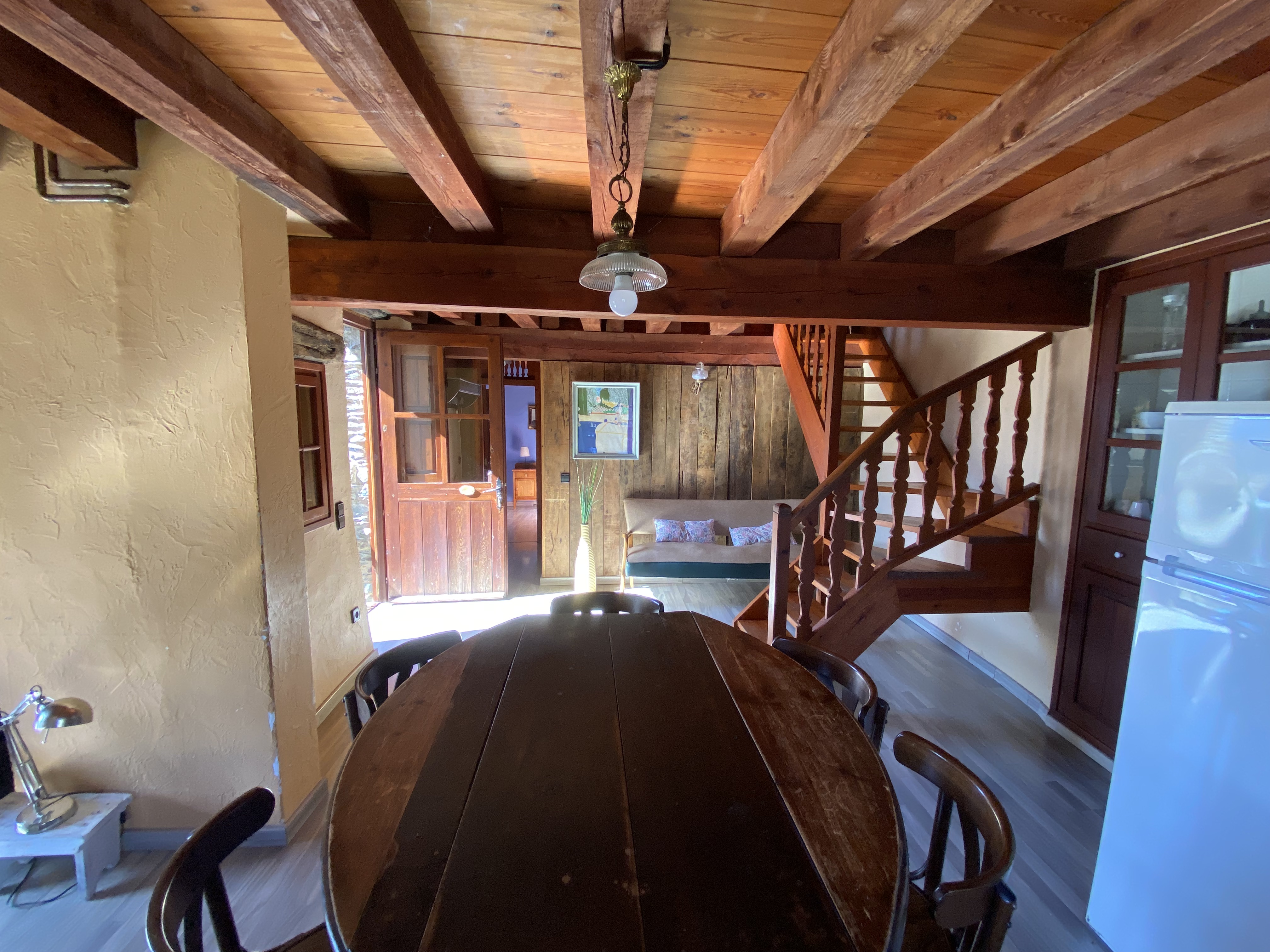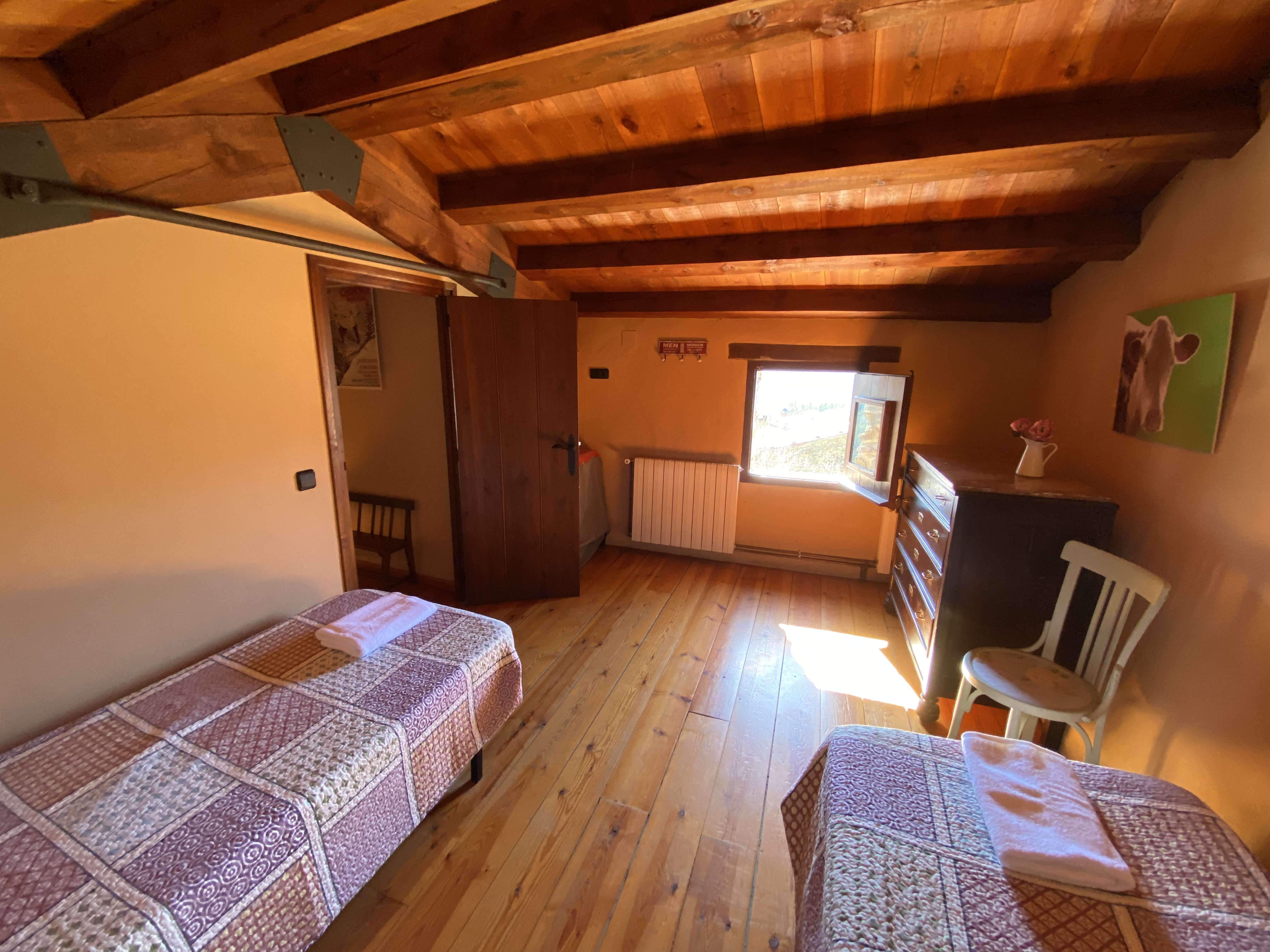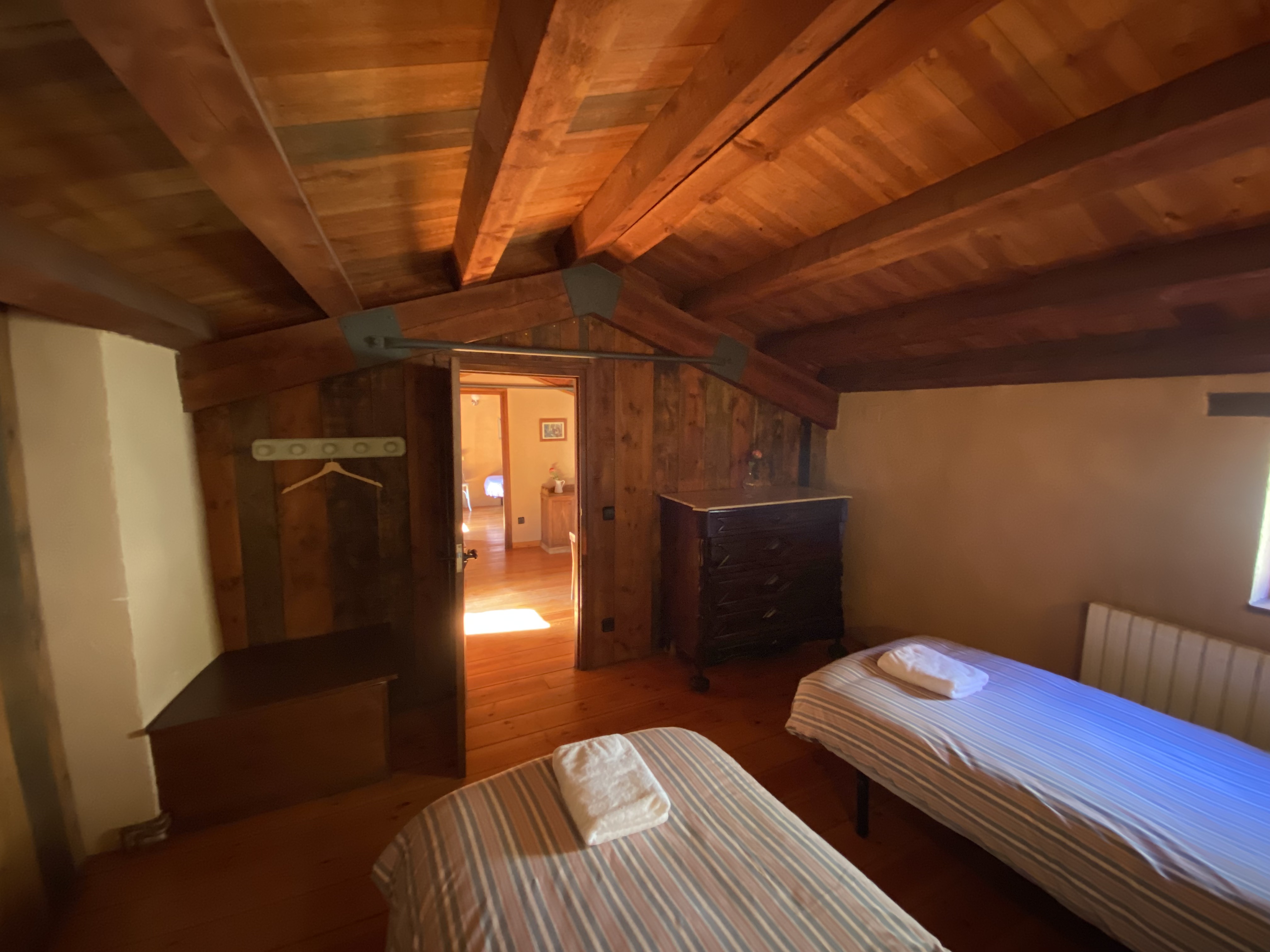 En la primera planta encontramos un salón-comedor muy amplio con cocina vitrocerámica, nevera, chimenea, sofá, sillón y TV. Aquí también hay un baño completo y una habitación con una cama doble. Por unas escaleras se accede al primer piso, donde encontramos dos habitaciones dobles con dos camas individuales cada una, y un lavabo completo.
