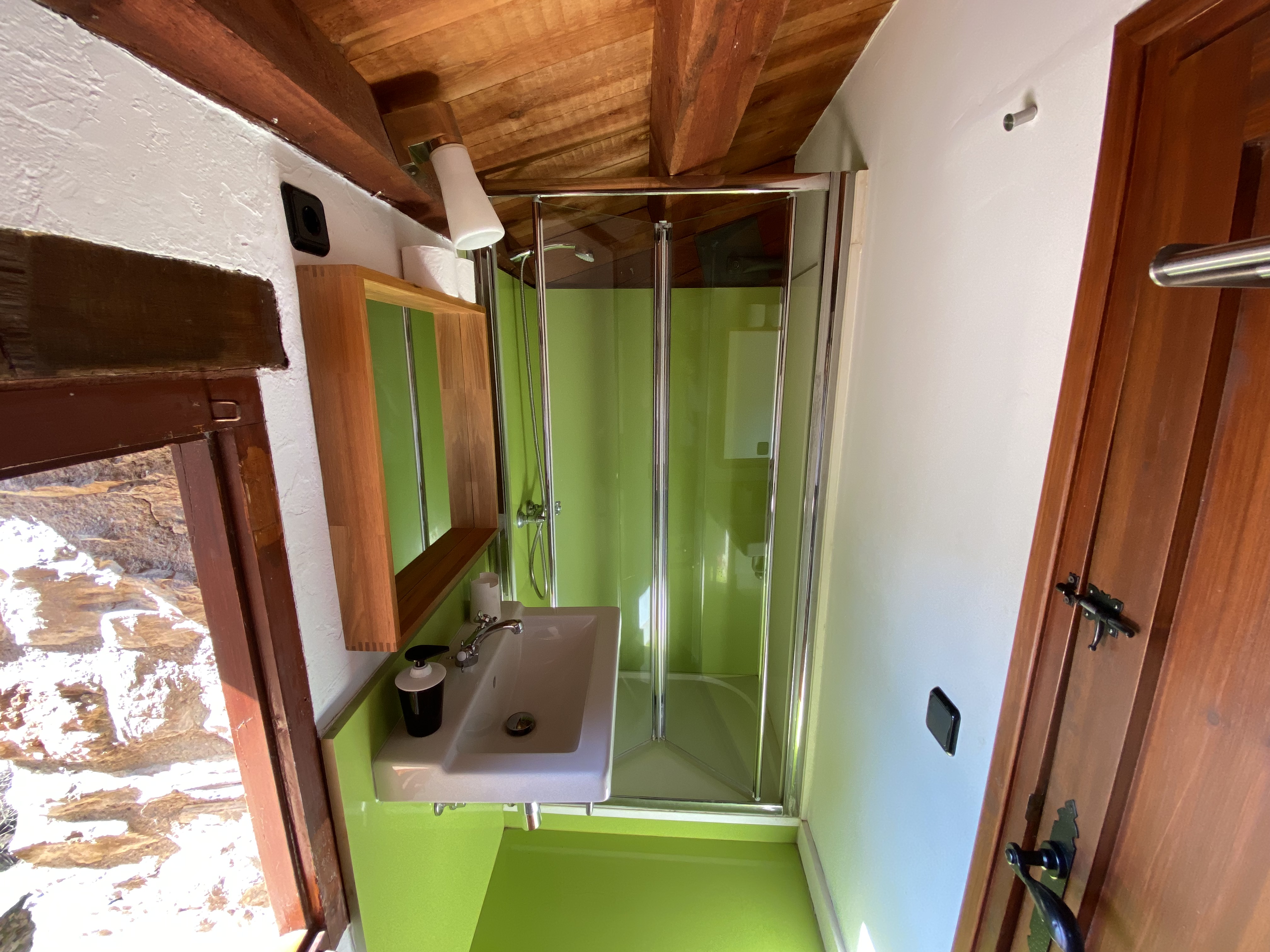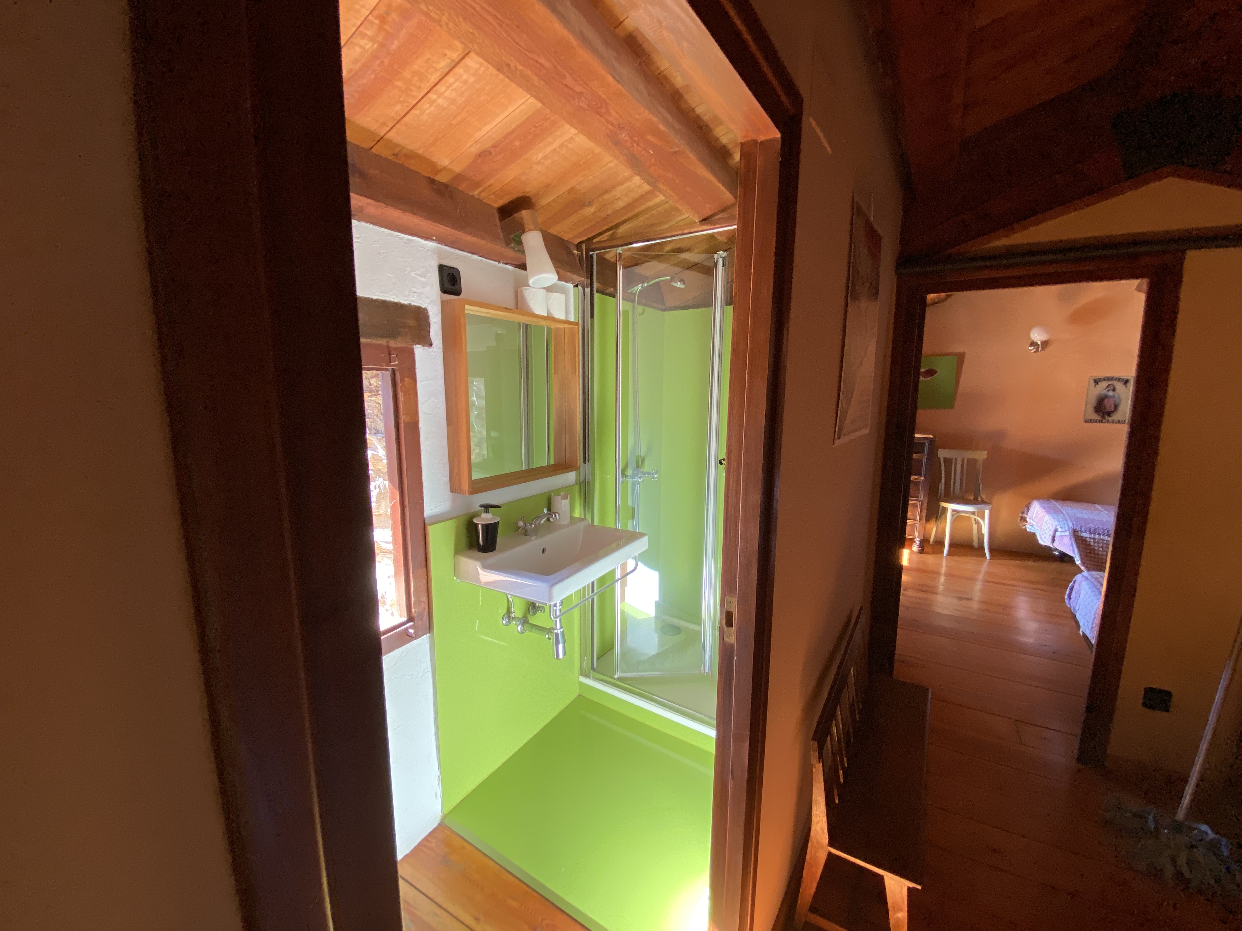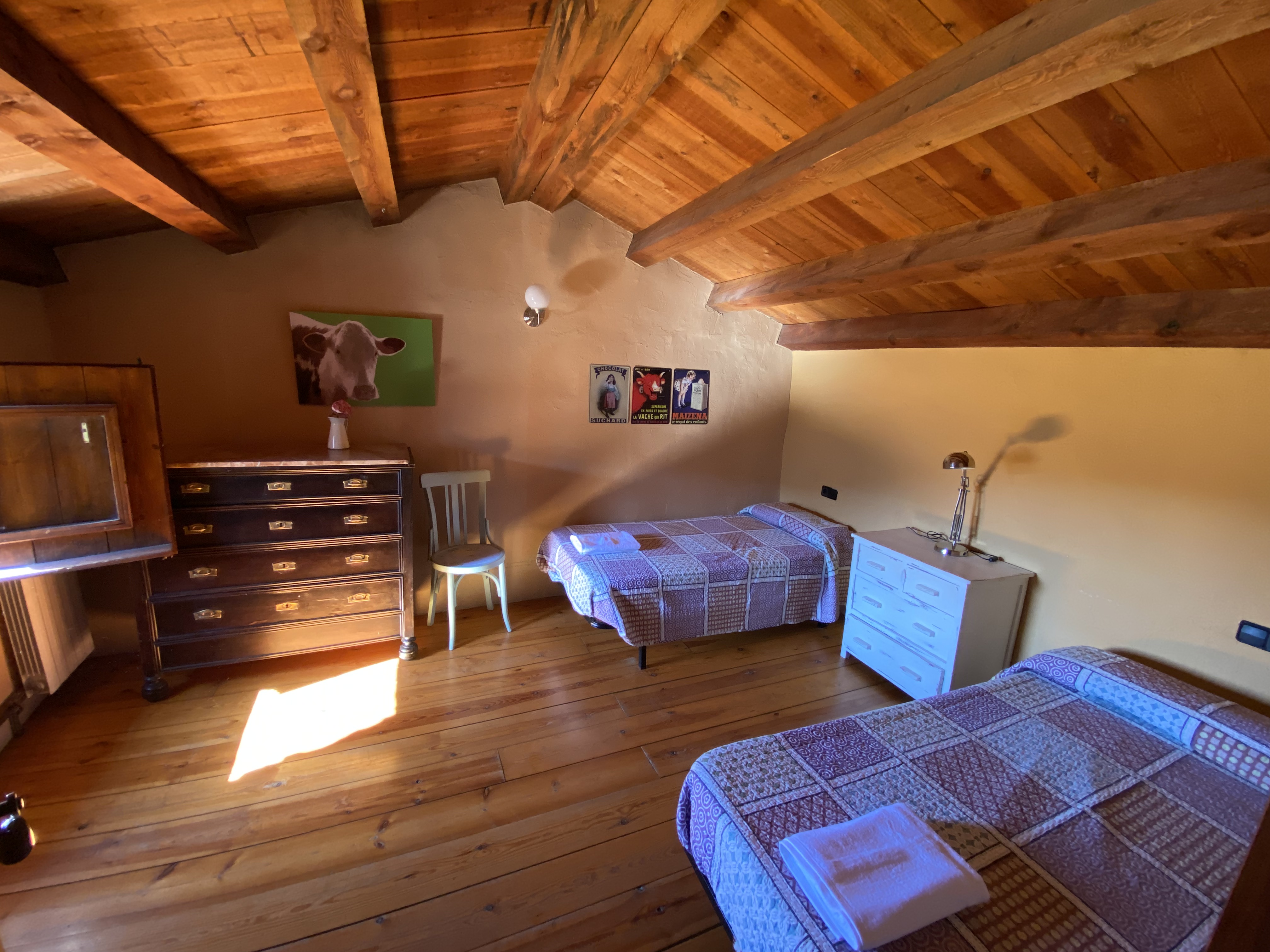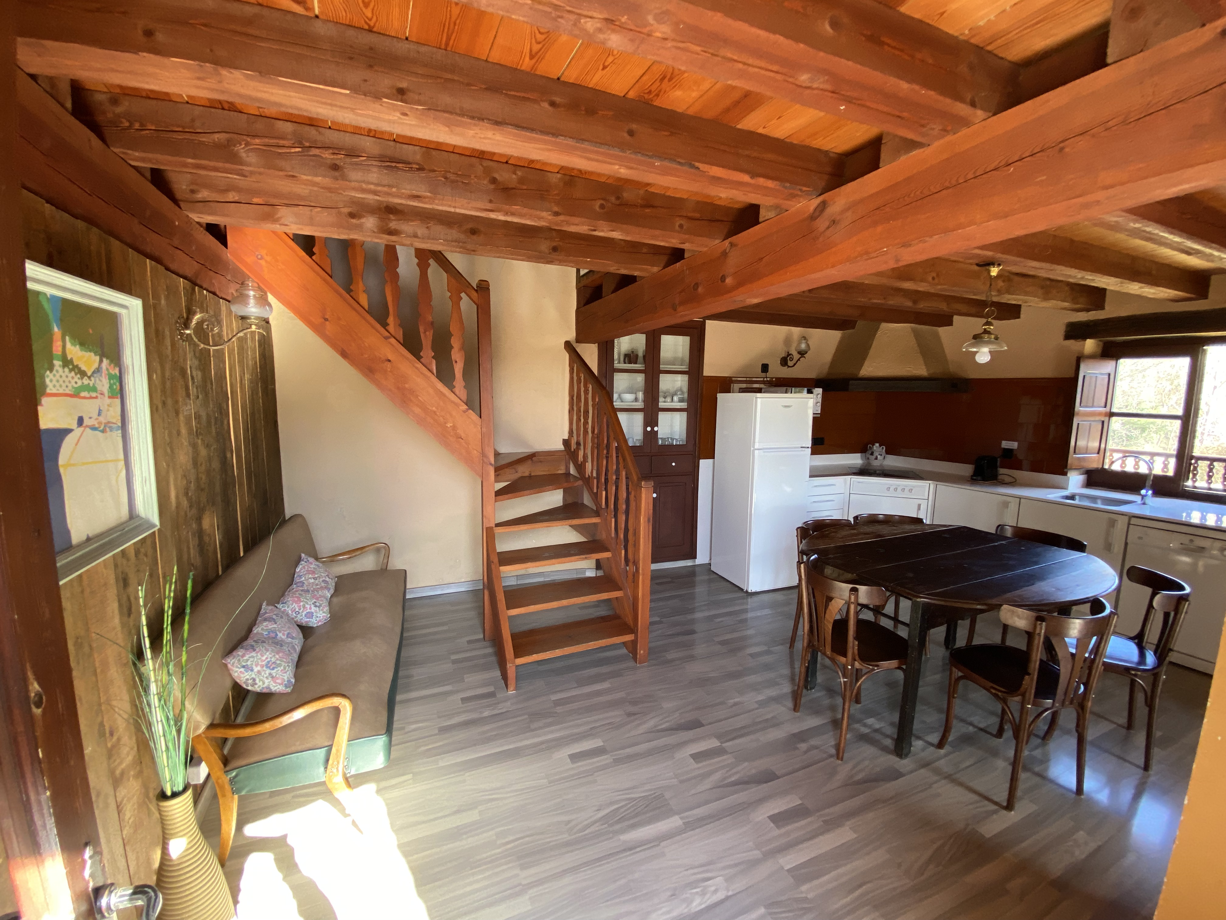 En la primera planta encontramos un salón-comedor muy amplio con cocina vitrocerámica, nevera, chimenea, sofá, sillón y TV. Aquí también hay un baño completo y una habitación con una cama doble. Por unas escaleras se accede al primer piso, donde encontramos dos habitaciones dobles con dos camas individuales cada una, y un lavabo completo.